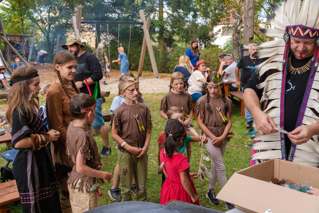 "Letos jsme se s prázdninami rozloučili ve velkém stylu – po indiánsku. Děti si vytvořily vlastní čelenky, pomalovaly si tváře, zkoušely hod oštěpem i lukostřelbu a nechybělo ani indiánské občerstvení a posezení u ohně. Celý den byl naplněn radostí, smíchem a nezapomenutelným dobrodružstvím."